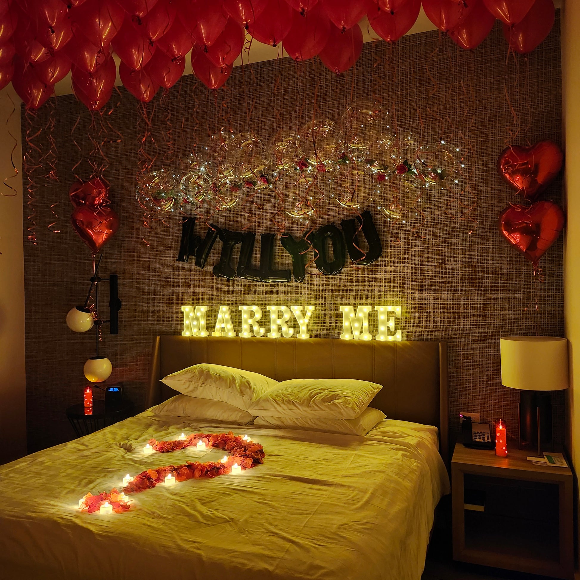 This is our “leave it to us” option—perfect for anyone who wants us to go all out and get creative. You simply choose your color package, and we design a one-of-a-kind Valentine’s Day room using our signature balloon styling and festive touches.